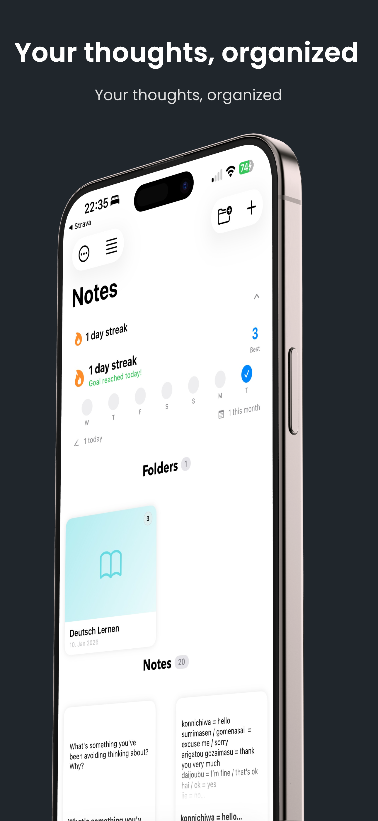 3. Stay Organized: Easily sort your notes into customizable folders, so everything is right where you need it. Sync effortlessly across your Apple devices with iCloud integration.