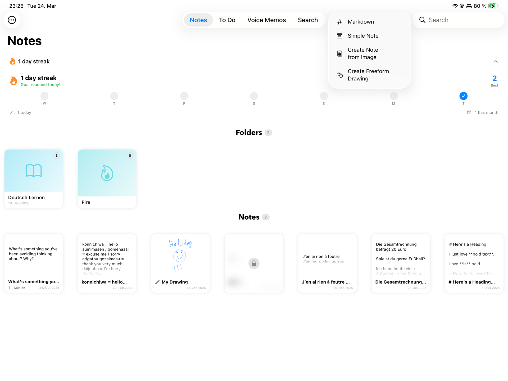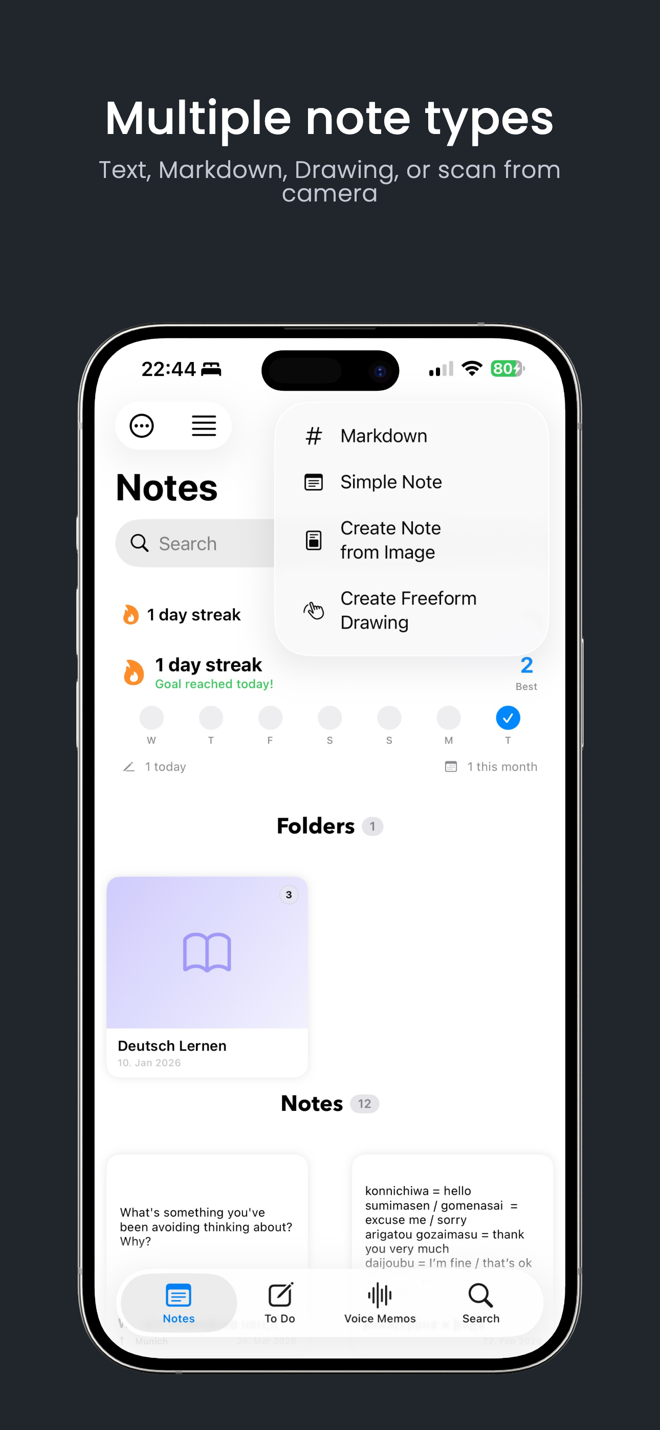 1. Create Notes Your Way: Choose between Simple Notes, Markdown Notes for rich formatting, Freeform notes for drawings, or even generate notes from images with our built-in OCR technology.